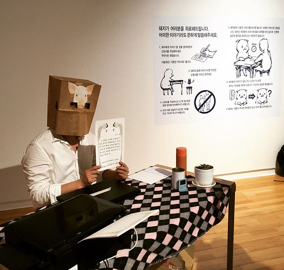 Pig's consolation_counseling, part-time artist, The Cock lays golden eggs _ Museum Busking, Soma Museum of Art (May 12-28, 2017)